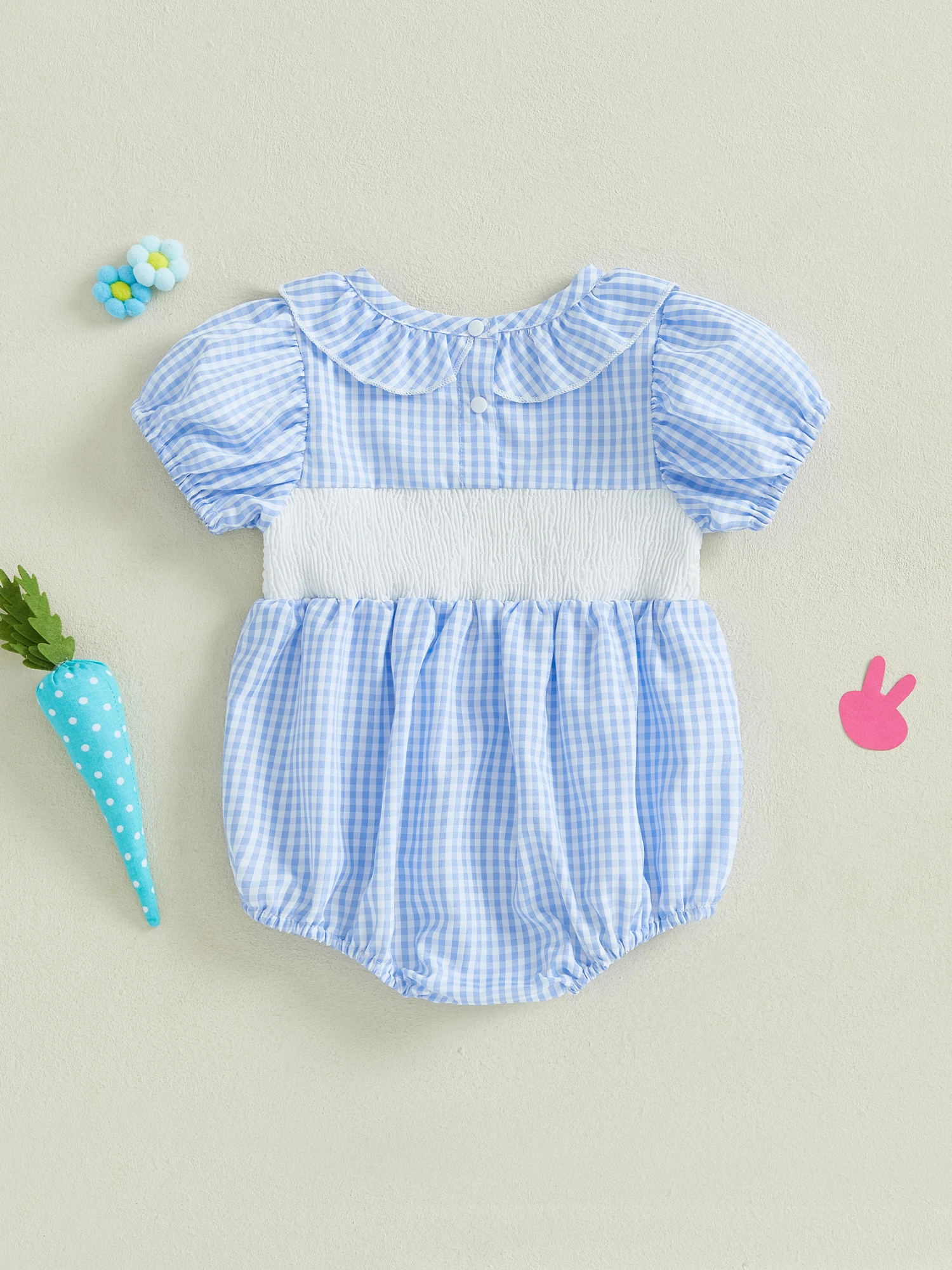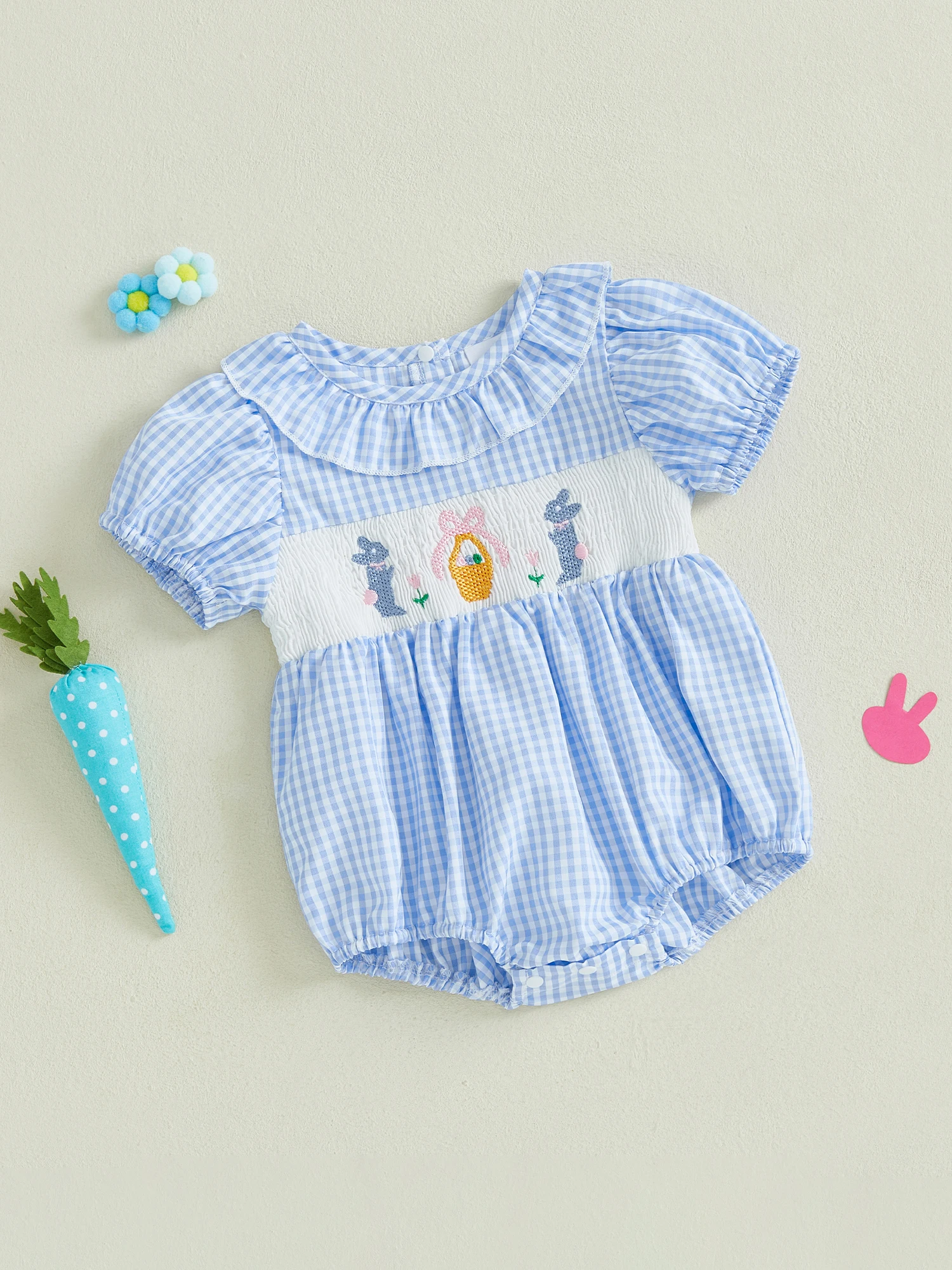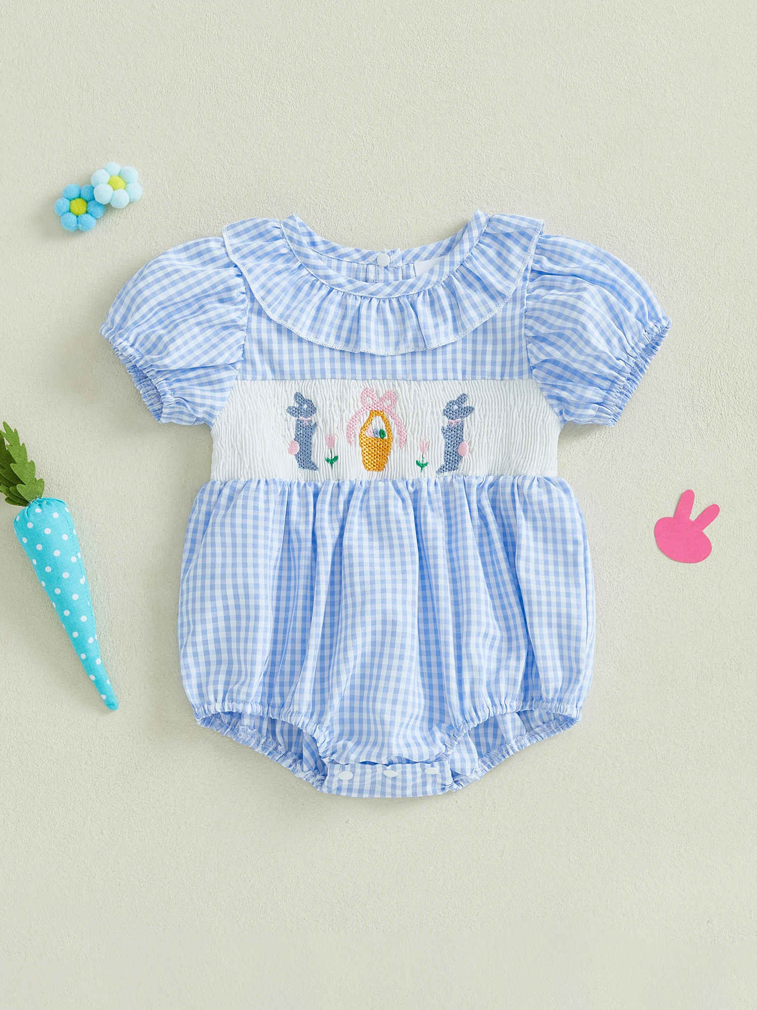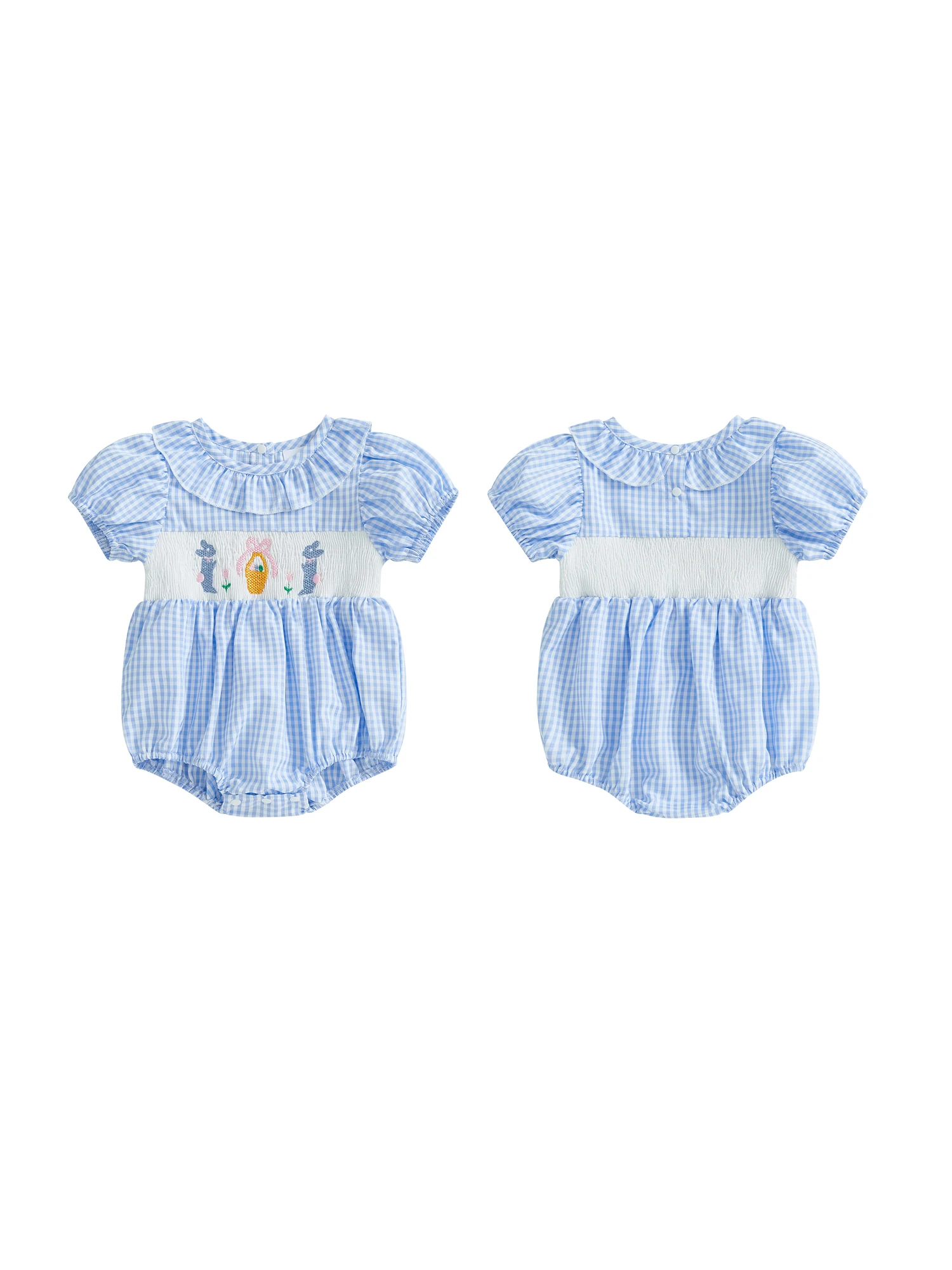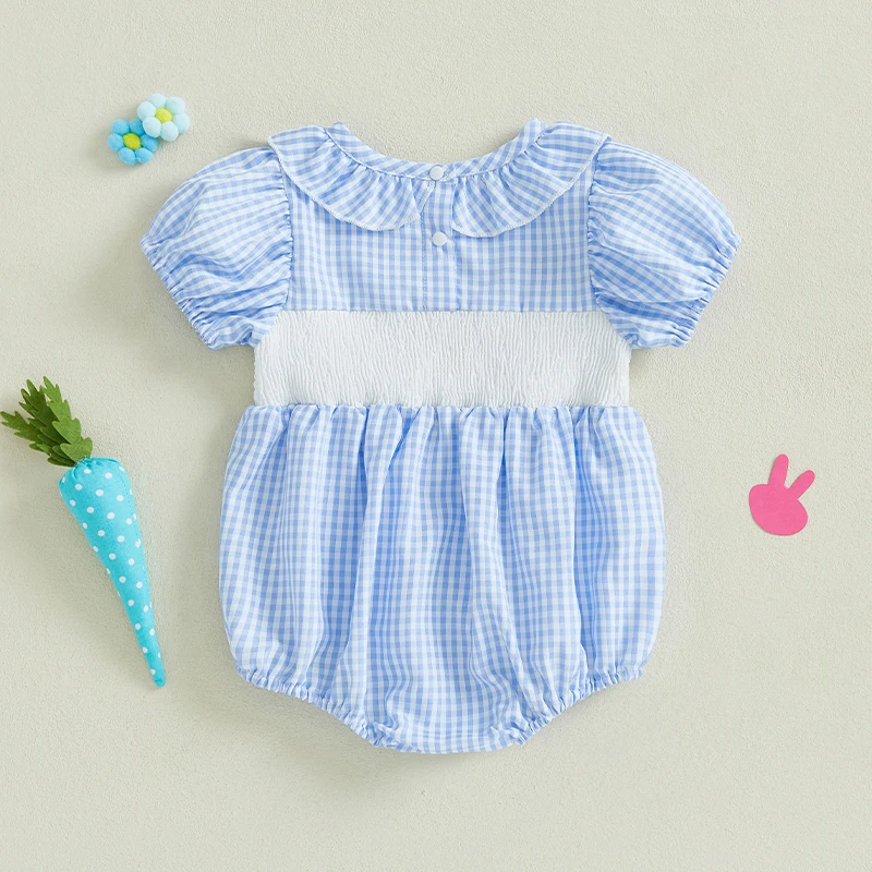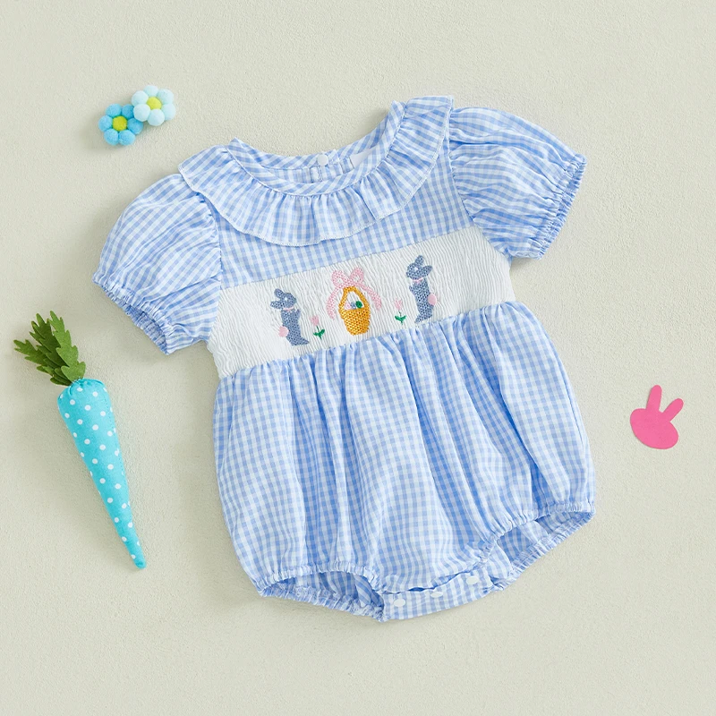 Baby Girls Rompers Easter Clothes Rabbit Embroidery Ruffles Round Neck Short Sleeve Summer Bodysuits JumpsuitsSize (cm)
