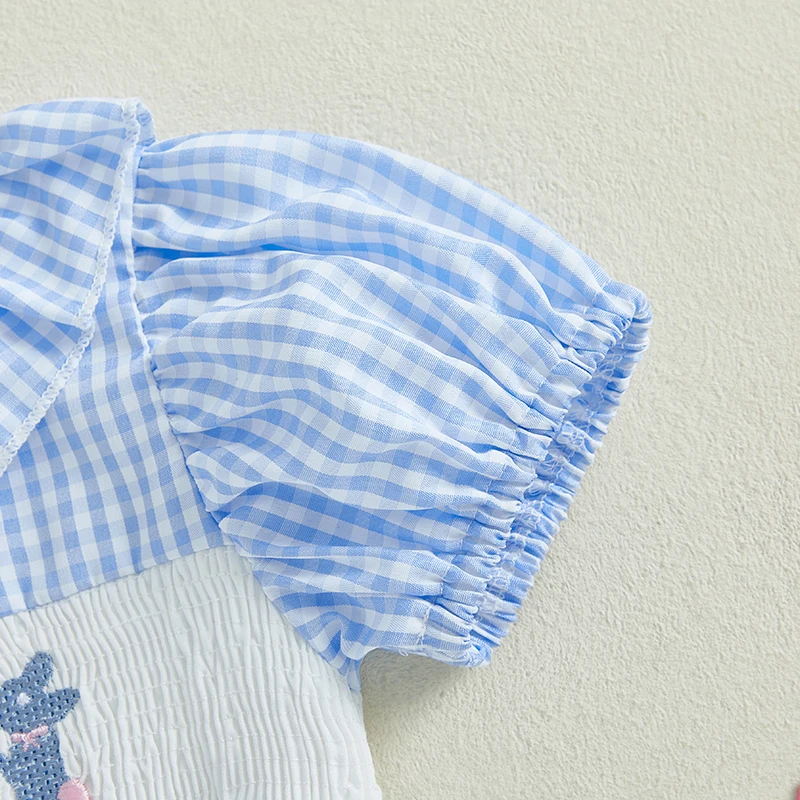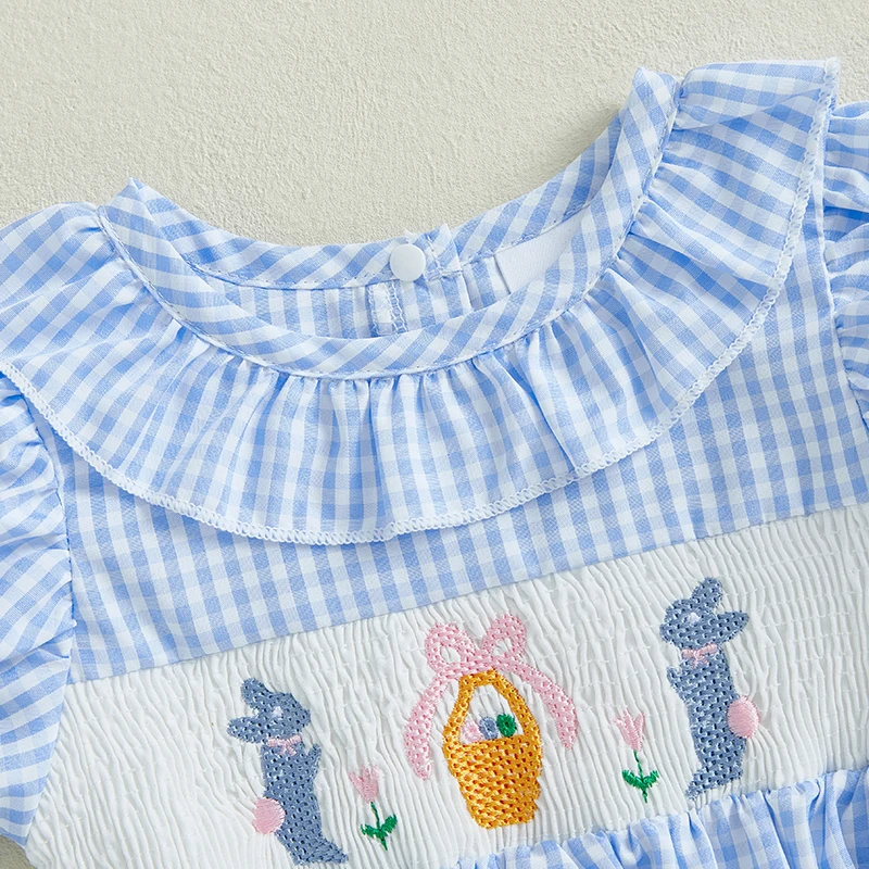 Adorable Toddler Girls Easter Outfit with Bunny Embroidery Ruffled Sleeves and Round Neckline - Cute Summer Romper